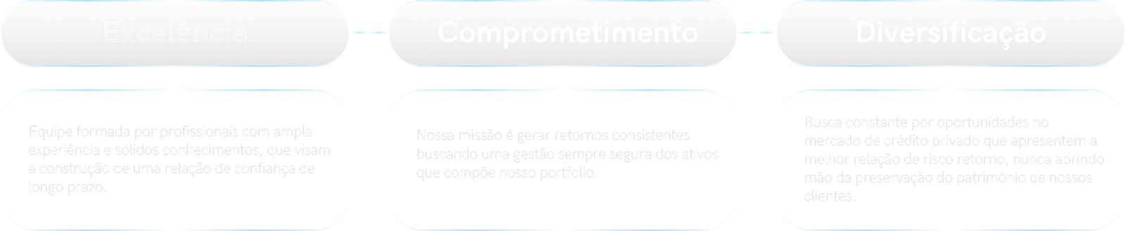 Busca constante por oportunidades no mercado de crédito privado que apresentem a melhor relação de risco retorno, nunca abrindo mão da preservação do patrimônio de nossos clientes.